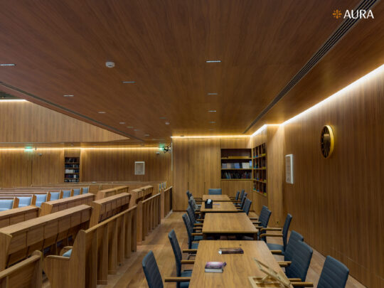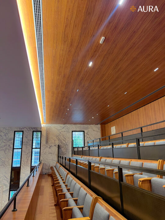 O projeto de uma sinagoga moderna utiliza iluminação direta e indireta para trazer modernidade, beleza e conforto ao espaço. A iluminação direta destaca elementos arquitetônicos, enquanto a indireta cria uma atmosfera acolhedora e serena. Com materiais contemporâneos e linhas elegantes, o design respeita a tradição e oferece uma experiência visual e sensorial inovadora.